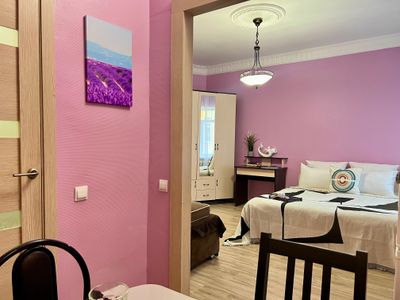 - семейная студия со своим полноценным кухонным блоком и санузлом в номере. Рассчитано для проживания до 4 человек на большой кровати и раскладной диван-кровати.